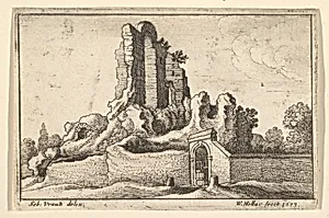 Ruins and a barred gate on the Esquiline Hill in Rome, from "Roman Ruins"