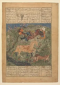 "Rustam Saved by his Horse Rakhsh from an Attacking Lion", Folio from a Shahnama (Book of Kings) of Firdausi