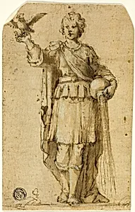 Pen and brown ink with brush and brown wash, heightened with lead white (partly oxidized), on tan laid paper, laid down on ivory laid paper