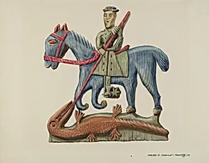 Saint George & the Dragon, Carved Out of Section of Plank - Painted