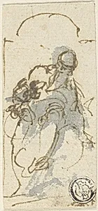 Pen and brown ink, with brush and blue wash, on ivory laid paper