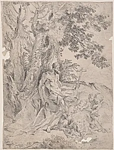 Pietro Testa was born in Lucca in 1612 and, in accordance with the conventions of Italian artistic training, made his way to Rome while still young. There he studied under two of the leading painters of the early seventeenth century: Domenichino, from whom he absorbed a taste for classical restraint and narrative clarity, and Pietro da Cortona, whose more exuberant Baroque manner offered a contras...