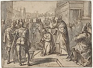 Samuel Annointing David; verso: sketch of two figures