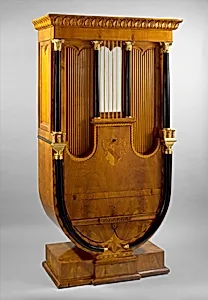 This elegant *Secretary (sécre à abattant)*, crafted in Austria around 1815–20 with some later additions, exemplifies the refined furniture of the Biedermeier period—a time of post-Napoleonic following the Congress of Vienna. drop-front desk, standing over 8 feet tall, was designed for the burgeoning middle class, blending practicality with understated luxury. Its form allowed for discreet storage of papers and writing supplies, reflecting the era's emphasis on functional domestic spaces amid Austria's cultural and political resurgence. Made primarily from walnut, the piece features parcel-ebonizing—a technique where parts of the wood were painted black to imitate costly ebony—enhanced by ornate gilt bronze mounts, leather writing surfaces, glass panels, and brass hardware. These materials and methods highlight exceptional Viennese craftsmanship, where high-quality woods met subtle opulence, avoiding the excesses of earlier Empire styles. The gilt bronze accents, likely depicting neoclassical motifs, add a touch of grandeur to its otherwise sober lines. A generous gift to the Metropolitan Museum of Art from Frederick R. Koch in 1991, this secretary invites visitors to appreciate how everyday objects embodied 19th-century Austrian ingenuity, bridging utility and artistry in the home.