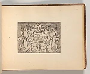 Cornelis Bos, a prominent Flemish engraver active in mid-16th century created this enchanting *Series of Cartouches* 1545–60 as part of his album *Targhe ed ornati di varie eciose invenzioni (Cartouches and other of various and capricious), page 49. Rendered in meticulous engraving on a modest sheet measuring about 8 × 10 inches, this print exemplifies the Renaissance fascination with elaborate decorative motifs. Bos, influenced by Italian masters like Parmigianino, in reproductive prints that disseminated innovative designs across Europe. Engraving's fine lines allowed Bos to craft intricate...