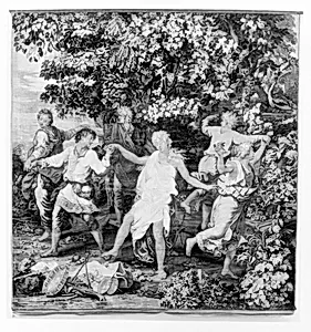 This magnificent tapestry, *Shepherds and Shepherd Dancing*, is part of a luxurious set of *Mythological Subjects* produced at the renowned Manufacture Nationale des Gobel in Paris. Designed between 1684 and 1686 by artists including Antoine Coypel and Pierre Monier—after original compositions by the Renaissance master Giulio Romano—it was meticulously woven from 1689 to 1692 by a team of skilled artisans like Jean-Baptiste Corneille, Jeanebvre the Elder, and Jans the Younger. Commissioned under the patronage of King Louis XIV, the Sun King himself, it exemplifies the opulence of France's Baro...