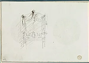 Sketch of a Fireplace with a Mirror Surrounded by Drapery