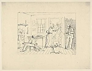 Slaves Concealing their Master from a Search Party (from Confederate War Etchings)