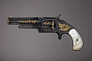 pistol (a): L. 7 11/16 in. (19.5 cm); L. of barrel 3 1/2 in. (8.9 cm); Cal. .32 in. (8.1 mm) [.32 Rimfire Long]; case (b): 8 7/8 x 5 1/4 x 1 7/8 in. (22.5 x 13.3 x 4.8 cm)