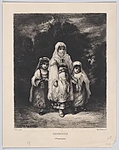 **Smyrniotes** (1873) is a delicate etching and drypoint print through a collaboration between French artist Narcisse-Virgile Diaz de la Peña, known for his Romantic landscapes and figure studies influenced by the Barbizon School and printers Emile Boilvin and Françoisénard. Housed in the Metropolitan Museum of Art's Drawings and Prints department from The Elisha Whittelsey Collection, this work (plate: 6 7/8 × 5 9/16 in.) captures Smyrniotes—residents of Smyrna (modern-day Izmir, Turkey)—likely on children, as suggested by its tagging. Diaz's evocative designs brought an exotic, Orientalist f...