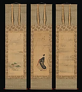 Triptych of hanging scrolls; ink, color, and gold on silk