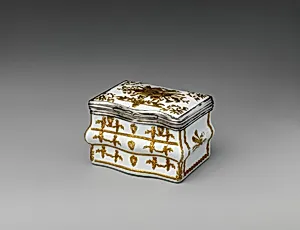 This elegant snuffbox, crafted in the Workshop of Charles From around 1744–50, exemplifies the opulent world of 18th-century luxury goods. Likely produced in Berlin, a hub for fine enameling, it measures a compact 2-1/16 inches high, 3 inches wide, and 2-1/4 inches deepperfectly sized for a gentleman's pocket. Snuffboxes like this held powdered tobacco, a fashionable indulgence among the aristocracy, transforming everyday habits into displays of wealth and taste during the Rococo era's love for intricate, playful decoration. The box's medium—enamel on copper, partly gilt, with silver—highlights masterful technique. Enameling involved fusing vibrant, translucent glass powders onto metal in a kiln, creating durable, jewel-like scenes resistant to wear. Fromery's Berlin workshop was renowned for such miniature masterpieces, blending painting-like detail with metallic sheen for lids often featuring pastoral or allegorical motifs (though specifics here are preserved in their luminous subtlety). Housed in The Metropolitan Museum of Art's European Sculpture and Decorative Arts department, this piece was acquired through generous exchanges involving gifts from George Blumenthal and J. Pierpont Morgan in 1993. It invites us to appreciate how everyday objects became canvases for artistic virtuosity, bridging utility and high art in Enlightenment-era Europe.