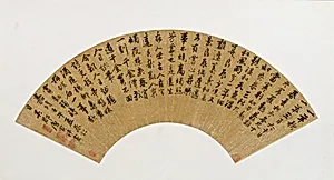 Folding fan mounted as an album leaf; ink on gold-flecked paper