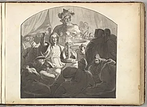 Speaker Addressing Male Figures Gathered at Night Around a Fountain (in Sketch Book With Drawings on Twenty-six Leaves)