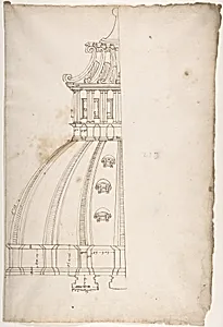 St Peter's, dome, model, half elevation (recto) blank (verso)