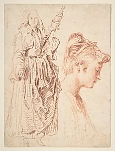 This drawings exemplifies the artistic traditions of its period. Created ca. 1714–18, it demonstrates the two shades of red chalk technique characteristic of its era.