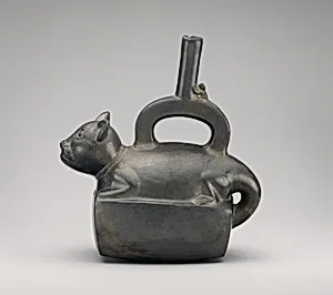 Stirrup-spout bottle with feline
