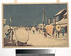 Street Scene in the Outskirts of Edo on an Evening in Winter