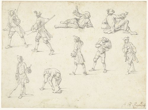 Studieblad met negen figuren