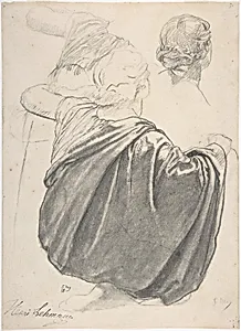 Henri Lehmann's *Studies of a Drap Female Figure, Kneeling Seen from the Back*1858) is a delicate preparatory drawing for the grand decorations in the East Trpt of Paris's Church of Sainte-Clothilde, Gothic Revival masterpiece completed in the mid-19th century. As a of the esteemed Neoclassicist Jean-Auguste-Dominique Ingres, embodied the academic tradition of meticulous figure studies, capturing the fluid folds of drapery on a kneeling woman—likely an allegorical or saintly figure destined for a monumental mural. This intimate sheet, now at The Metropolitan Museum of Art, reveals the artist's...