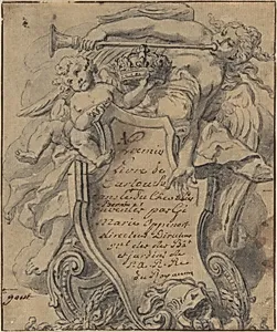 Gilles-Marie Oppenord, prominent French architect and ornamental designer of the early th century, created this delicate *Study for a Cartouche as a preparatory sketch for an elaborate decorative frame. Cartouches, those scrolling, asymmetrical ornaments often enclosing coats of arms or inscriptions, were hallmarks of the emerging Rococo style—a lighter, more playful evolution from the grandeur of Baroque. Oppenord work bridged the opulent Louis XIV era and the refined Régence period, influencing architecture, furniture, and prints across Europe. Rendered in pen and black ink with subtle brus...