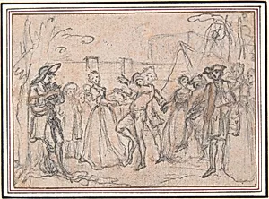Hubert-François Bourguignon, known as Gravelot (1699–1773), was a leading French Rococo engraver, illustrator, and designer whose elegant draftsmanship bridged the artistic worlds of France and England. Born in Paris to a tailor, he adopted his pseudonym from a godfather and grew up alongside his elder brother, the geographer Jean-Baptiste Bourguignon d'Anville. After neglecting studies at the Col...