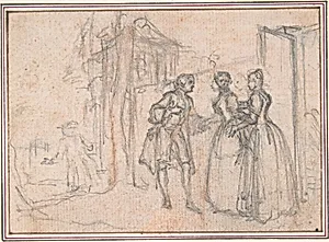 Hubert François Gravelot, leading French Rococo artist andaver (1699–1773), created this delicate *Study for an Engraving of "Songs in the Opera of Flora"* in 1737. Working in Paris and later London, Gravelot was renowned for his intricate illustrations that captured the playful elegance of Rococo style, often blending theater, music, and mythology. This small preparatory drawing (just 2 13/16 x 3 15/16 inches) served as a blueprint for an engraving, likely tied to sheet music or promotional imagery for an opera celebrating Flora, the Roman goddess of flowers and spring—a popular motif in 18th...
