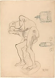 Study of a Nude Old Woman Clenching Her Fists, and Two Decorative Objects