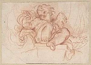 Study of a Putto Seated on a Corbel in a Shell Niche