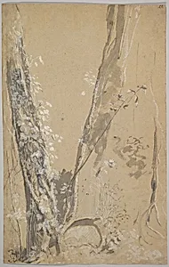 Joseph Werner the Younger (1637–1710), a Swiss-German Baroque artist renowned for his intricate miniature portraits and landscapes, created this double-sided drawing as a meticulous study of nature's wild beauty. Titled *Study of Overgrown Trees verso: Study of a Cypress and Two Overgrown Trees it captures the tangled, majestic forms of ancient trees, evoking the untamed wilderness that fascinated 17th-century European artists amid the era's growing interest in naturalism. Executed in brush and gray ink heightened with white gouache on a generous sheet measuring 14 13/16 x 9 7/16 inches, the ...