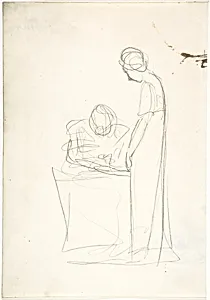 Study of Two Figures: One Seated, the Other Standing (recto); Study of a Head Looking Upwards (verso)