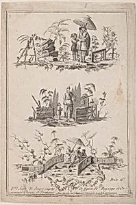 Suite de divers sujets de figure de Paysage et Ornements Chinois et François