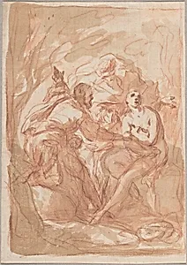 red chalk with red and brown wash and white heightening on laid paper