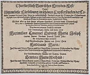 Text to accompany plate illustrating the fireworks display celebrating the birth of Prince Max Emmanuel of Bavaria, Munich, 1662