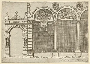 The arcade of the palace of the Archbishop of Bologna with temporary decorations for the entry of Pope Clement VIII in Bologna in 1598