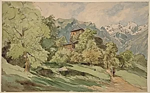 The Castle of Bürglen with the Alps Beyond