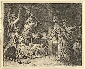 The Cat, Caught in a Snare, is Mistreated by the People from the House from Hendrick van Alcmar's Renard The Fox