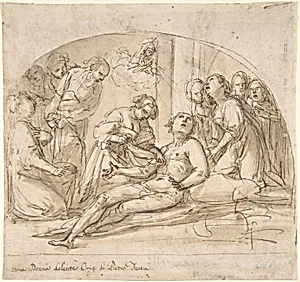 The Emperor Constantine Copronymous Burned by an Invisible Fire (recto); Studies of Sibyls and Angles (verso)