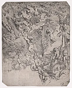 The garden of Venus, proof impression of upper left corner by Pietro Testa