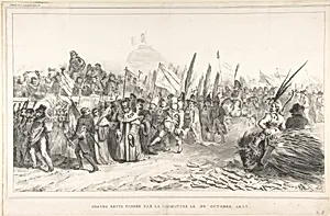 In the bustling world of 1830s Paris, *The Grand Review of the Juste-Milieu Passing La Caricature, October 30, 1832* captures the sharp wit of political satire during the early July Monarchy. Published in Charles Philipon's groundbreaking journal *La Caricature*, collaborative lithograph features illustrations by J.J. Grandville and Auguste Raffet—two masters of caricature renowned for their exaggerated, incisive commentary on power. The title mocks a grand military parade of the *Juste-Milieu* (the moderate centrist faction supporting King Louis-Philippe), humorously depicted "passing" the jo...