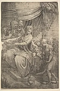 Andrea Schiavone, born Andrea Meldolla around 1510 or 1515 in Zara (modern Zadar, Croatia), in Venetian-ruled Dalmatia, hailed from a family rooted in Meldola near Forlì in Romagna, Emilia-Romagna. His father, Simon Meldolla, served as a garrison commander there, and both parents originated from Meldola, where the family held property into the early 16th century. Nicknamed "Schiavone"—"the Slav"—a...