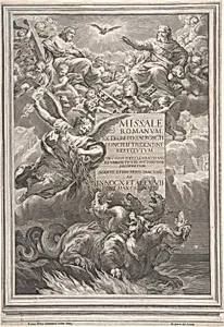 The holy trinity with Saint Michael vanquishing a six-headed dragon, frontispiece to 'Missale Romanum ex decreto sacrosancti Concilii tridentini restitutum'