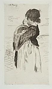 Edouard Manet's *The Little Girl* (1–62) is a delicate etching and drypoint on laid paper, capturing the tender innocence of a young child in one of the artist's early forays into printmaking. Measuring just 8 1/8 x 4 9/16 inches on the plate, this final state (II) exemplifieset's ability to translate his bold, modern vision from canvas to paper. As a pioneer bridging Realism and Impressionism, Manet used etching—a process involving acid-bitten lines—for precise, fluid contours, enhanced by drypoint's soft, velvety burr for subtle textures and depth. Created during a pivotal period when Manet...