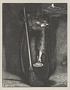 Step into the intimate drama of *The Lost Piece of Silver (1864), a wood engraving proof by Sir John Everett Millais with engraving by the renowned Dalziel Brothers. This poignant scene from the Metropolitan Museum of Art captures a woman in a dimly lit room, broom in hand and candle aglow, diligently searching for single lost coin. It illustrates the Parable of the Lost Coin Luke 15 in the Bible, symbolizing over repentance and divine care for the individual soul. Millais, a founder of the Pre-Rapite Brotherhood, infused the design with his signature realism and meticulous detail, drawing fr...