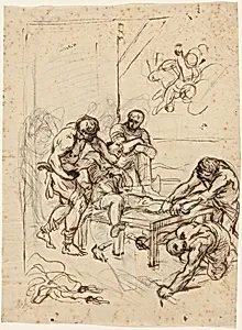 Lodovico Carracci's *The Martyrdom Saint Lawrence*, created in the late 16 century, captures a dramatic moment from Christian hagiography: the gruesome execution of the 3rd-century deacon Lawrence on a gridiron, a popular subject in Counter-Reformation art symbolizing faith's triumph over persecution. As a leading figure in Bologna's artistic revival alongside his cousins Annibale and Agostino, Carracci rejected Mannerist excesses for a more naturalistic, classically inspired approach, blending emotional intensity with anatomical precision. This preparatory drawing exemplifies the Carracci wo...