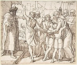 The Martyrdom of the seven brothers; verso: Sketch of two men wrestling (?)