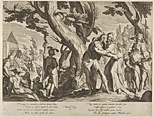 The Meeting of Moses and Jethro, from Thronus Justitiae, tredecim pulcherrimus tabulis..., plate 1