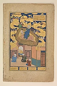 "The Mi'raj or The Night Flight of Muhammad on his Steed Buraq", Folio 3v from a Bustan of Sa`di