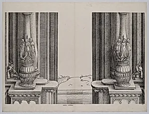 The Middle Section of the Entryway to the Central Portal, the Columns Decorated by Sirens and Sleeping Soldiers Behind, from the Arch of Honor, proof, dated 1515, printed 1517-18