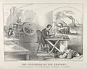 The Progress of the Century – The Lightning Steam Press. The Electric Telegraph. The Locomotive. The Steamboat.
